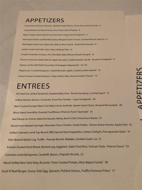 Canoe Menu Atlanta is a renowned eating house located inward Atlanta, Georgia. It is known for its stunning riverside location, exquisite bill of fare, as well as particular service. The eating house offers a unique dining feel that showcases the flavors as well as ingredients of the region.